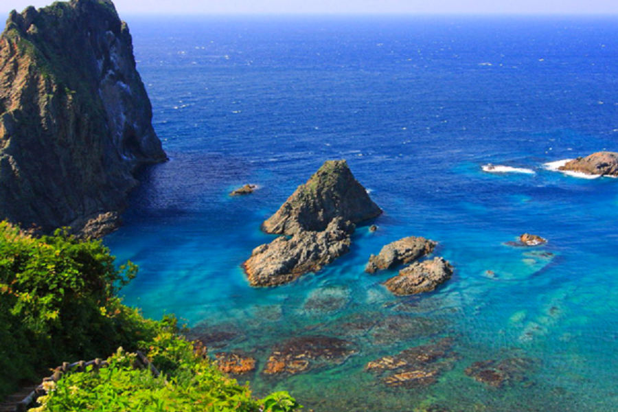 海水的透明度讓人讚嘆不已,從制高點往下眺望,一片積丹藍絕景盡收眼簾,浮露水面的岩礁,,更顯氣勢磅礡。同時散落於海洋中海草、礁岩,更為積丹藍增添繽紛色彩。