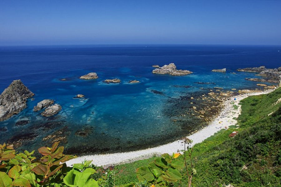 入選日本海岸百選的島武意海岸,入口是一條長長的隧道,穿過幽暗隧道,一瞬間寬闊,彷彿來到桃花源,無敵的海景就在眼前。