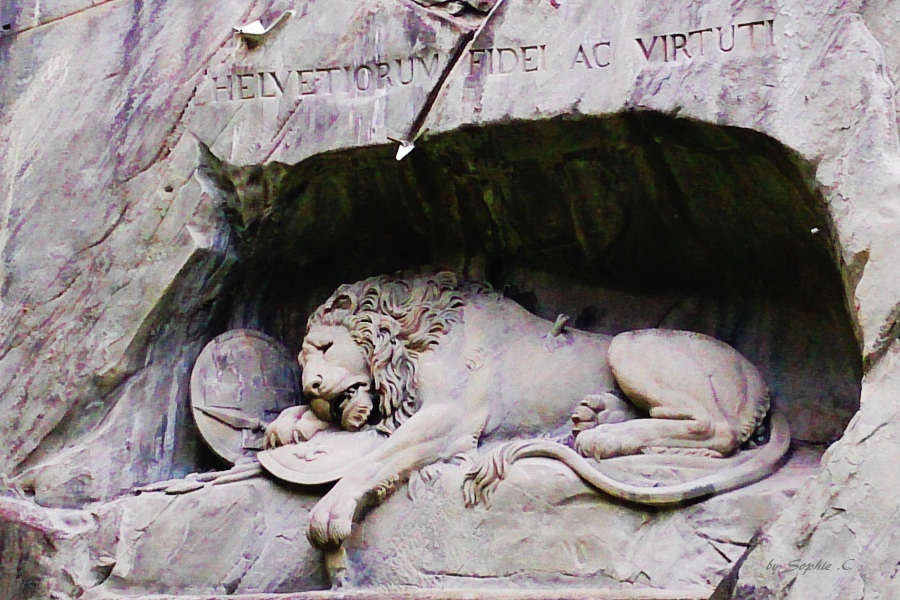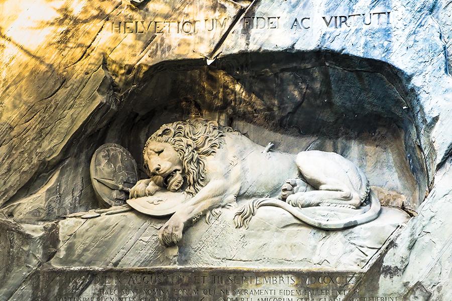獅子紀念碑是盧森的著名地標之一,是一座雕刻在岩石淺穴中一座負傷獅子的的石雕,又名「垂死獅子像」這座雕像由丹麥雕塑家巴特爾•托瓦爾森設計,用以紀念在1792年保衛巴黎杜伊勒里宮的戰鬥中的約1100餘名瑞士傭兵。而其中約有760名傭兵為保護法國國王路易十六及瑪麗皇后與其家族成員而壯烈犧牲,僅有350名生還。