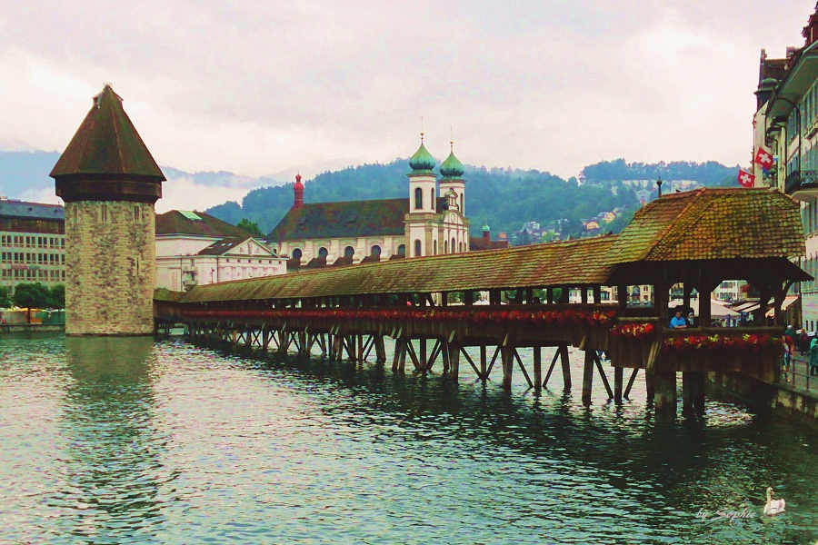 卡貝爾橋是盧森的地標,位於接近盧森湖的出口處。因為橋的北岸有一座聖彼德教堂,也叫作教堂橋。它保留著中世紀風格的橋梁畫滿很多彩繪裝飾,也被公認爲歐洲最古老的木制結構廊橋之一,1993年因撞船意外發生的火災中燒毀了大部分,事後重建再經修繕後得以恢復原貌。
