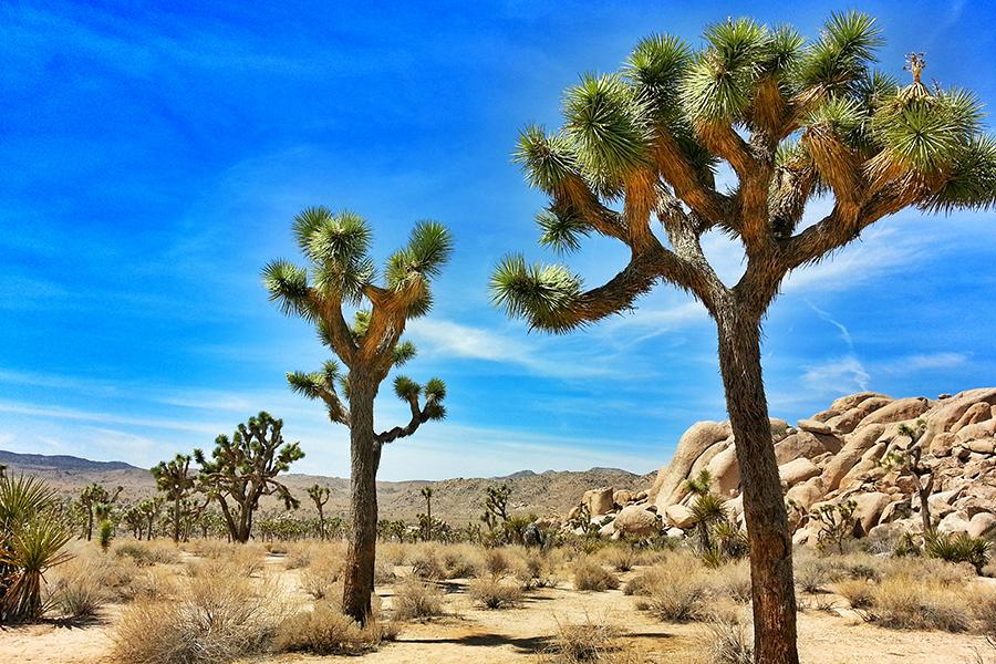 約書亞樹國家公園 洛杉磯-加州 位在莫哈偉沙漠及科羅拉多沙漠的交界之處約書亞樹國家公園,為一種大型的絲蘭植物能在150年間生長超過12公尺。在公園的北半部可以看見數不盡的的約書亞樹,挺著毛茸茸的手,指向各方,彷彿來到了一片妖精生存的小樹林。