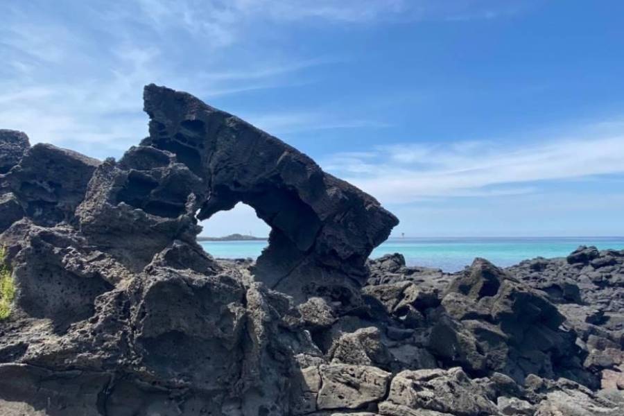 金寧海邊 #島嶼礁岩、沙灘海洋 整片海水浴場的海灘是沙子在巨大而寬闊的熔岩上長時間積累而成,陣陣海浪拍打在沙灘上,海浪聲令人身心舒暢。蔚藍的大海閃閃發光,讓人能充分感受到濟州島的自然之美。 看更多金寧海邊