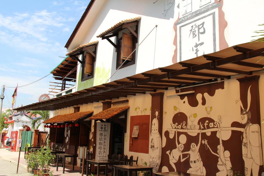 馬來西亞馬六甲古城中華人聚集的區域,細看雞場街的建築,走馬騎樓、古老樓房、華僑會館等等,全都帶有老香港的情懷。這條古街有許多販賣古文物的商店,所以又稱古董街。此外,街上還有不少珠鞋、木屐或陶瓷精品店,以及不同的食坊,選購手信的朋友也可以在這裡選購。